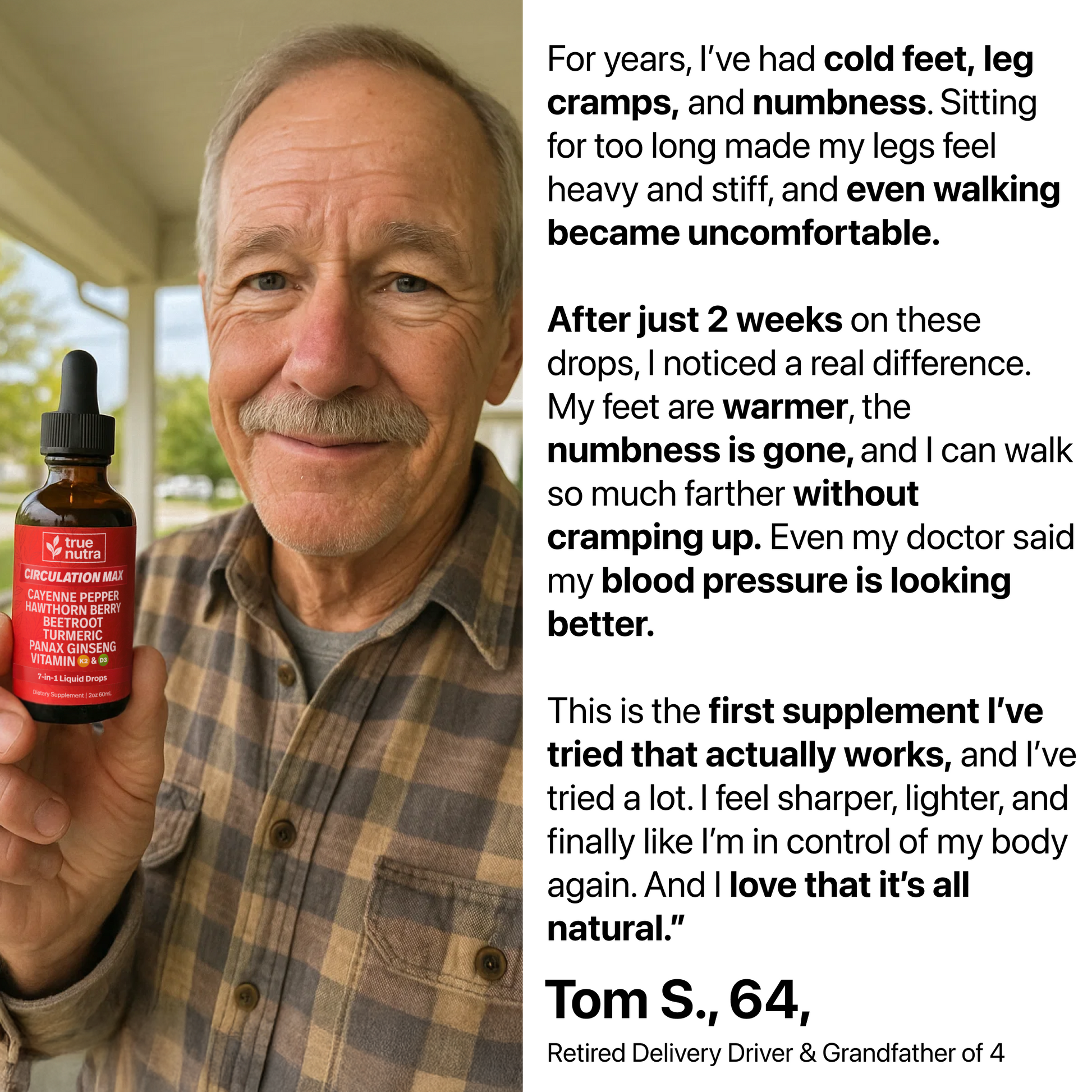 True Nutra's Circulation Max helps thousands of men & women over 40 restore healthy circulation, protect their heart, and feel in control of their health again.